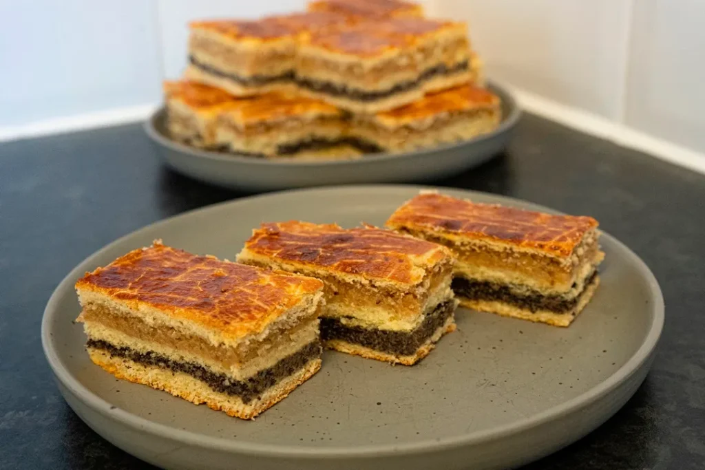 A diós–mákos bejgli szelet a klasszikus ünnepi sütemények ízvilágát idézi, mégis könnyebben szeletelhető formában készül. Az omlós tészta, valamint a gazdag mákos és diós töltelék rétegezve kerül a tepsibe, így minden falatban tökéletes az arány. Ez a recept ideális választás karácsonyra, ünnepekre vagy vendégvárónak.