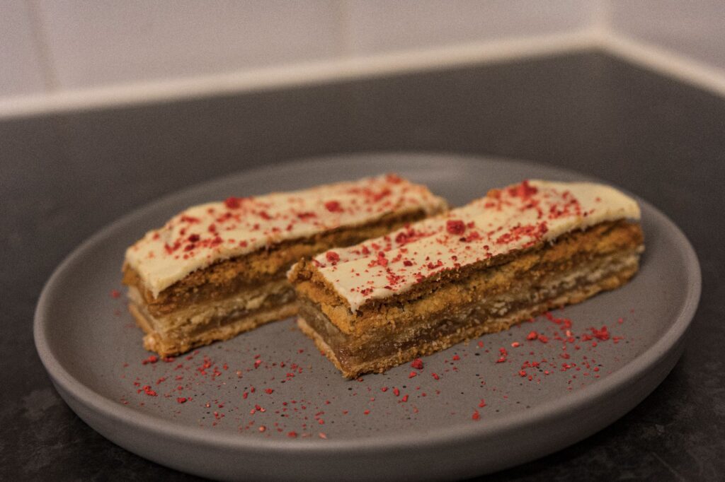 Téglalapra vagy kockára vágva kínáljuk, kávé vagy tea mellé különösen jól illik.