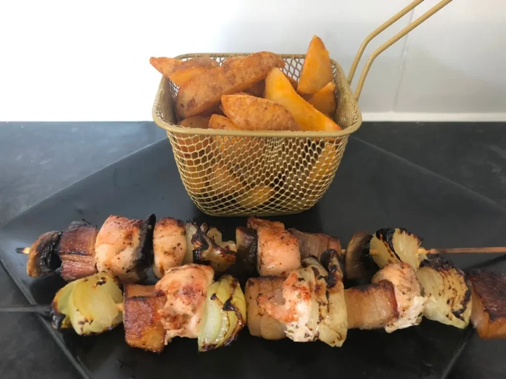 A grill nyárs, más néven saslik, az egyik legnépszerűbb grillezett étel, amely tökéletes választás nyári sütésekhez és baráti összejövetelekhez. A szaftos csirkemell, a füstölt szalonna, a gomba és a vöröshagyma együttese gazdag, harmonikus ízvilágot ad. Gyorsan előkészíthető, jól variálható, és grillen sütve igazán ellenállhatatlan fogás.